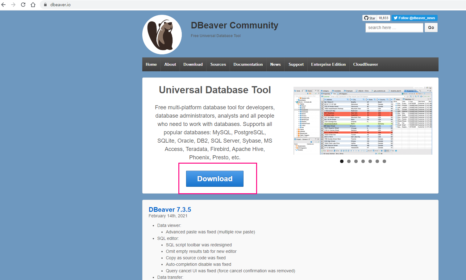 오라클,MSSQL,MySql등 다양항 DBMS를 관리할수 있는 툴이 있어서 소개시켜드리겠습니다. 프로젝트를 하다보면 데이터베이스를 평소에 자주 사용하지 않고 연동등의 목적으로 잠깐 사용해야될경우가 있습니다. 이때 DBMS별로 관리툴을 설치해야되는 번거러움이 있는데 DBeaver를 사용하면 간단하게 사용할수있습니다.