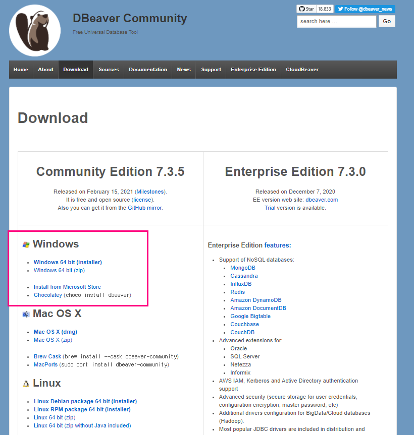 다운로드경로: dbeaver.io/
