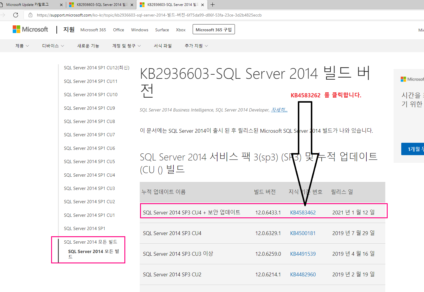 KB2936603-SQL Server 2014 빌드 버전 (microsoft.com)