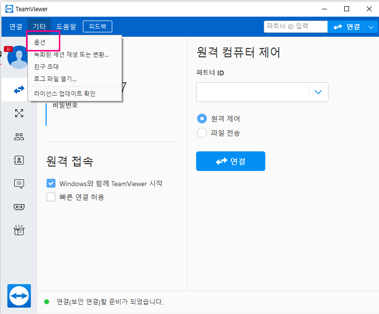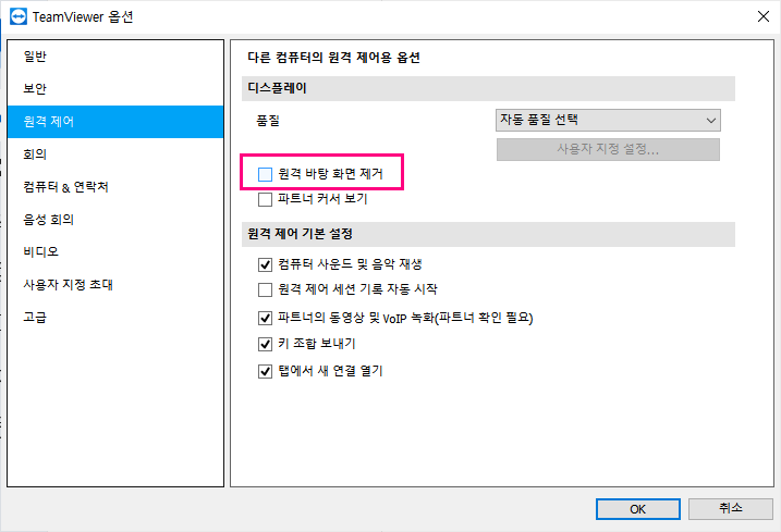 팀뷰어 실행 -> 옵션 -> 원격제어를 클릭합니다. 오른쪽 화면에 "원격바탕화면 제거" 체크하는 부분이 있는데 해당부분이 체크되어있는것을 해제하면 바탕화면이 활성화됩니다.