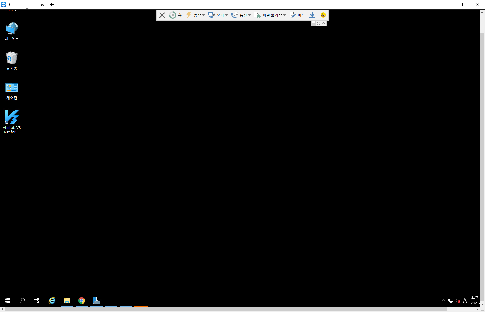 팀뷰어 원격프로그램을 사용하는경우 아래와 같이 바탕화면이 검게 나오는 경우가 있습니다. 실제 바탕화면은 설정이 되어있는데도 원격으로만 접속하면 검게나와서 바탕화면이 확인이 어려울 경우 팀뷰어 자체 설정으로 바탕화면 배경유무를 설정할수 있습니다.