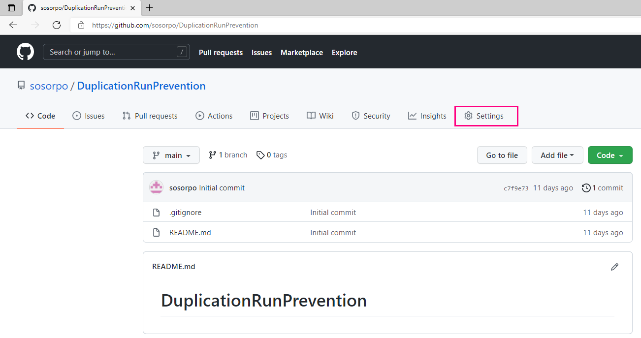 - 저장소 선택이 완료되면 Settings메뉴를 클릭합니다.