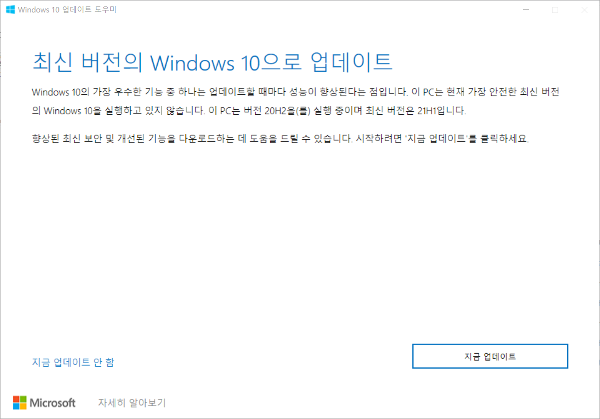 지금 업데이트 버튼을 클릭하여 도우미를 다운로드합니다.