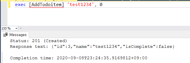exec [AddTodoitem] 'test1234', 0