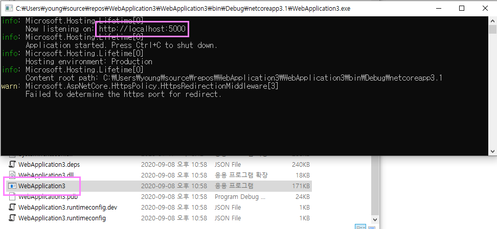 먼저 웹서비스관련 서버가 구축이 되어야 테스트가 가능합니다. 이전강좌에 Rest Api 서버를 만드는 부분을 참고해서 진행하도록 하겠습니다. Rest Api서버구축 참고 : sosopro.tistory.com/15프로젝트를 빌드후 콜솔로 실행해서 테스트 해보겠습니다. http://localhost:5000 으로 서비스를 실행하겠습니다.