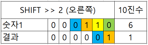 //Shift연산 (오른쪽 2칸)