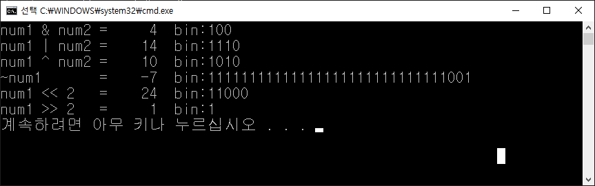 //Shift연산 (왼쪽 2칸) result = num1 << 2;