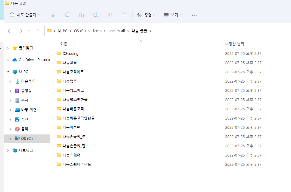 네이버에서 제공하는 글꼴을 설치하여 사용하고 싶은 경우에 아래와 같이 폰트를 설치해주면 사용이 가능합니다. 저는 나1눔고딕폰트를 주로 사용하고있어서 해당폰트를 윈도우11에 설치해보도록하겠습니다.