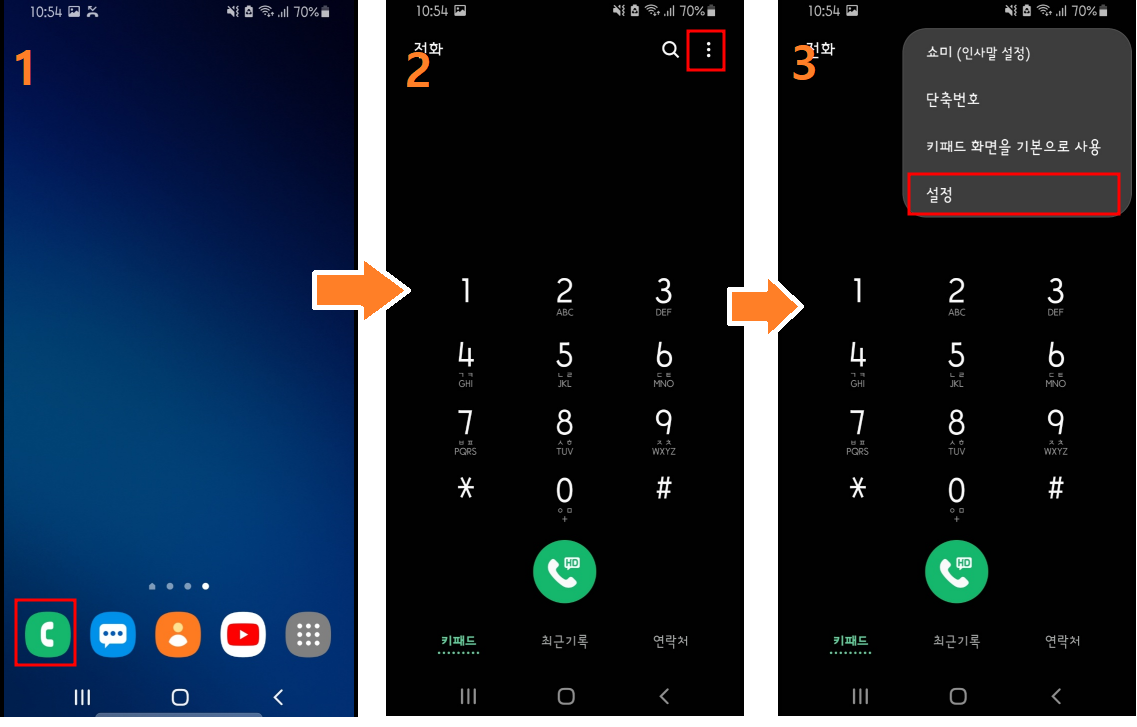 1. 메인화면의 전화기 버튼을 선택