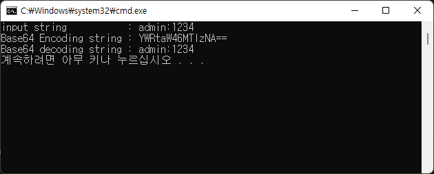 admin:1234를 Base64로 인코딩한 결과값은 YWRtaW46MTIzNA== 입니다.