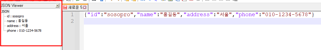 Show Json Viewer : 왼쪽메뉴에 JSON Viewer 창이 나타나며 Json데이터정보를 보여줍니다.