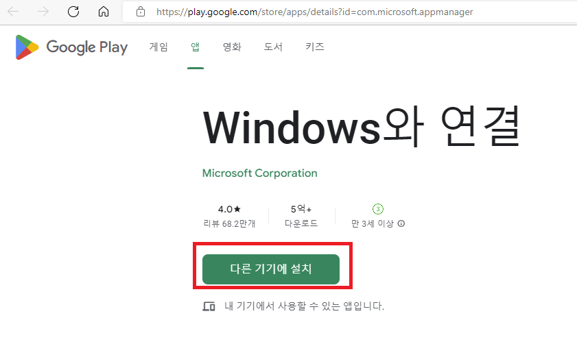 1. 먼저 아래링크에서 Windows와 연결 항목에 다른기기에 설치 클릭하여 설치합니다.