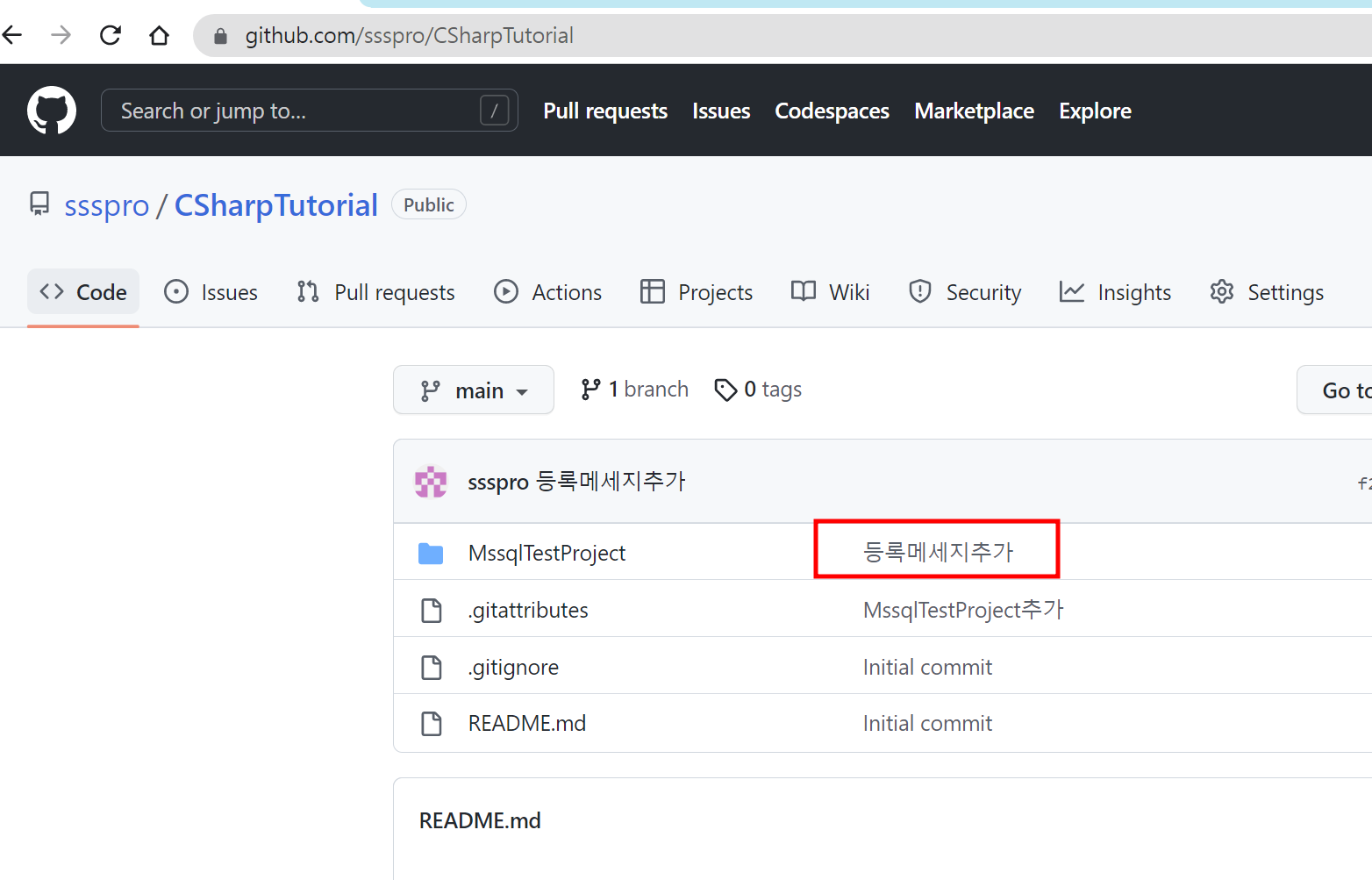 소스코드를 수정해서 Commit후 서버쪽에 데이터를 서버쪽으로 Push해서 올려보겠습니다.