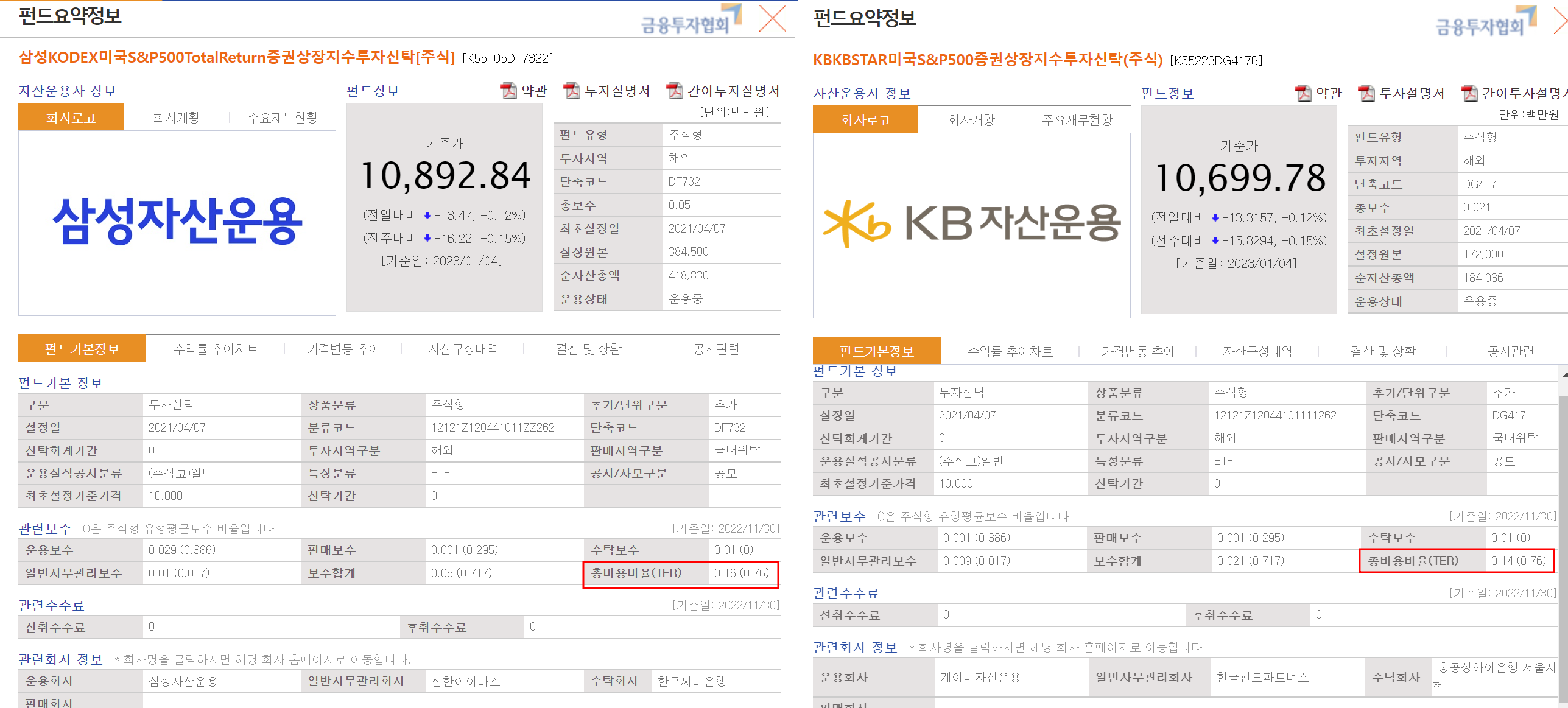 | KODEX미국S&P500TR | 0.05 | 0.16 |