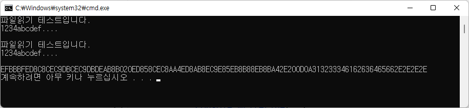 아래와 같이 파일전체읽기, 라인단위, 바이트배열로 값을 읽은 데이터를 표시하는 부분을 확인 할 수 있습니다.