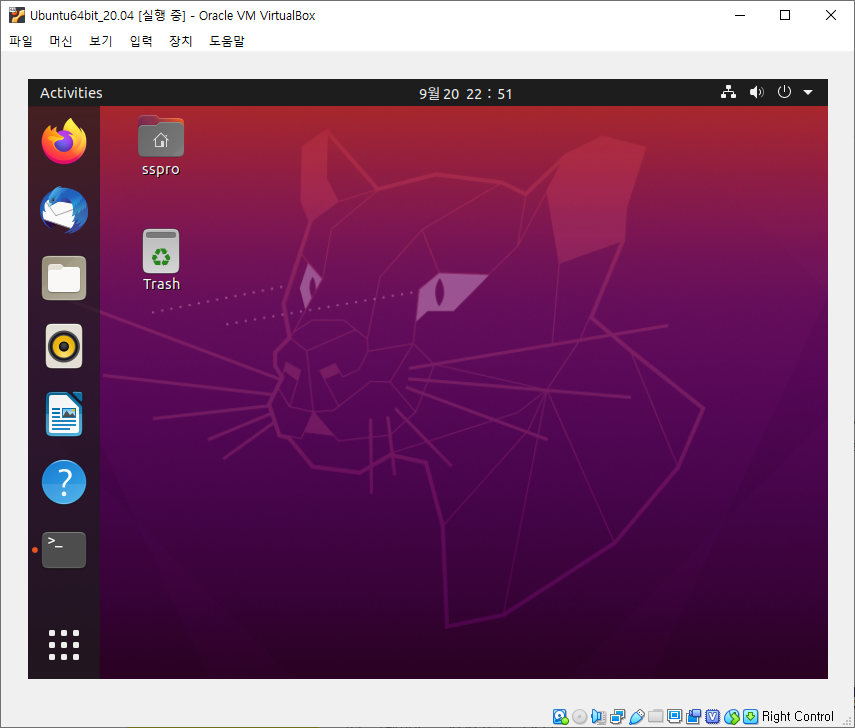 이제 리눅스OS를 VirtualBox 가상머신을 통해 사용할수 있습니다.