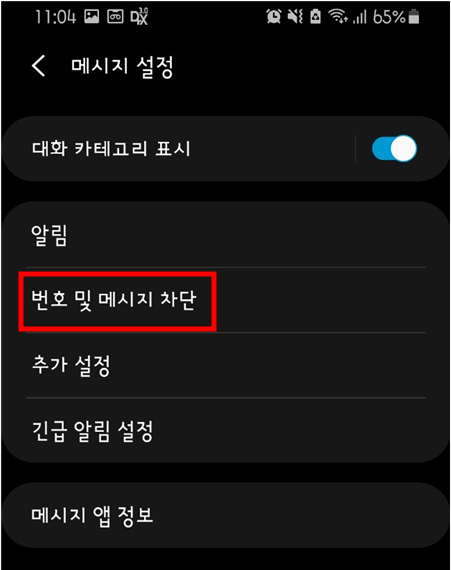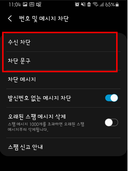 2. 번호 및 메세지 차단항목 선택