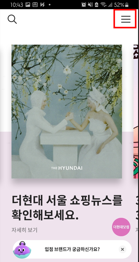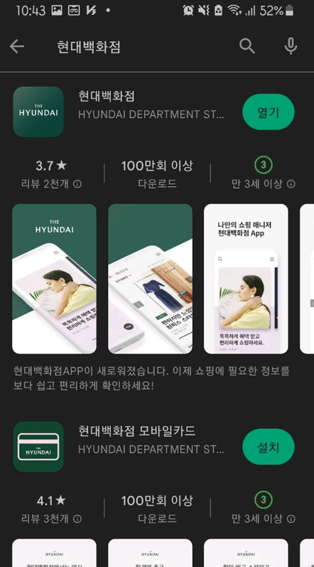 1. 앱스토어에서 현대백화점앱을 검색 후 설치합니다.