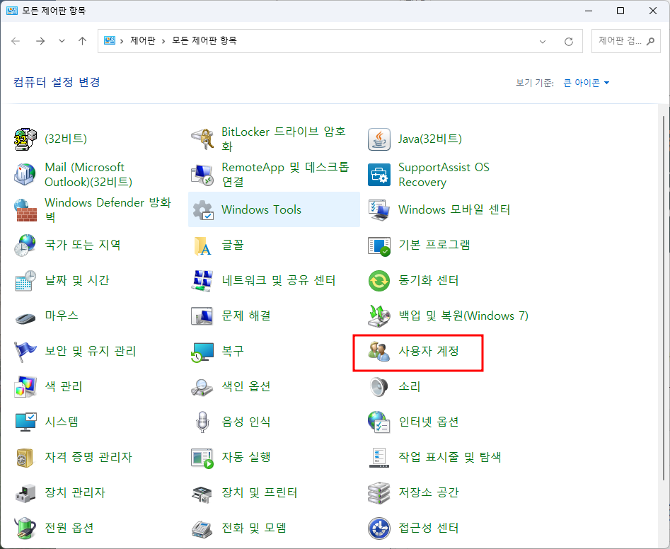 1. 제어판 -> 사용자계정 항목은 선택합니다.
