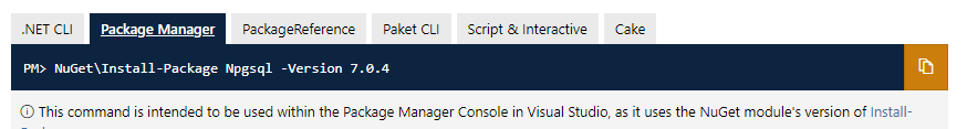 보다상세한 내용은 아래 npgsql 문서를 참고하면됩니다. https://www.npgsql.org/doc/index.html