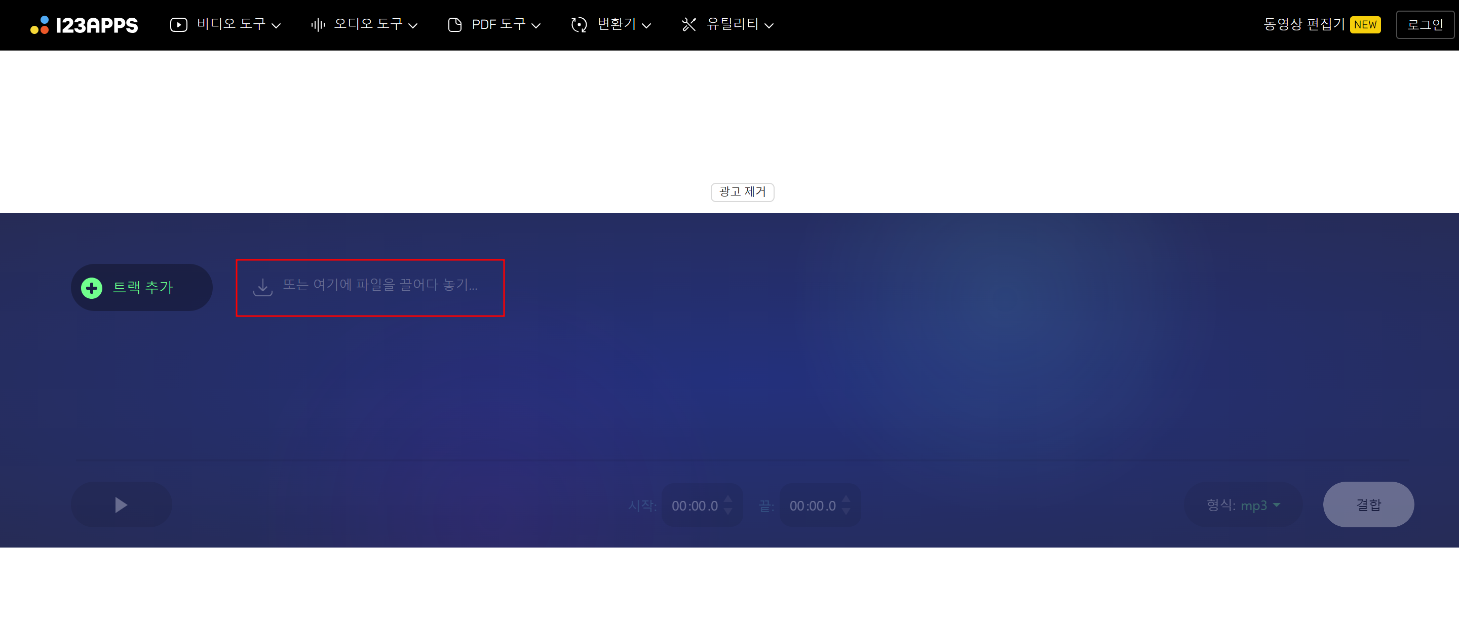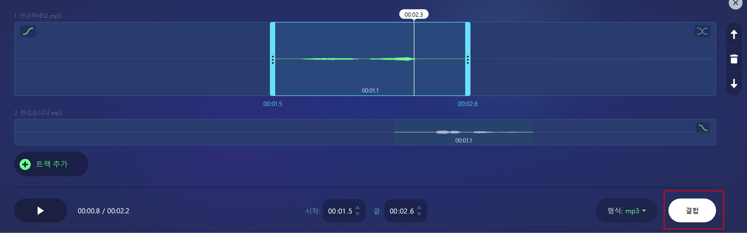 아래이미지와 같이 트랙추가하는 버튼이 나타나고, 합치고 싶은 음성파일을 드래그하여 붙여 넣습니다.
