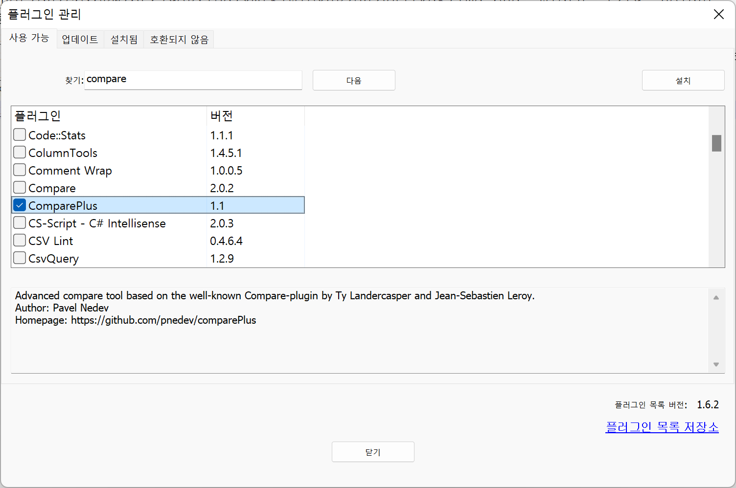 1. 먼저 플러그인에서 compare로 검색 후 설치