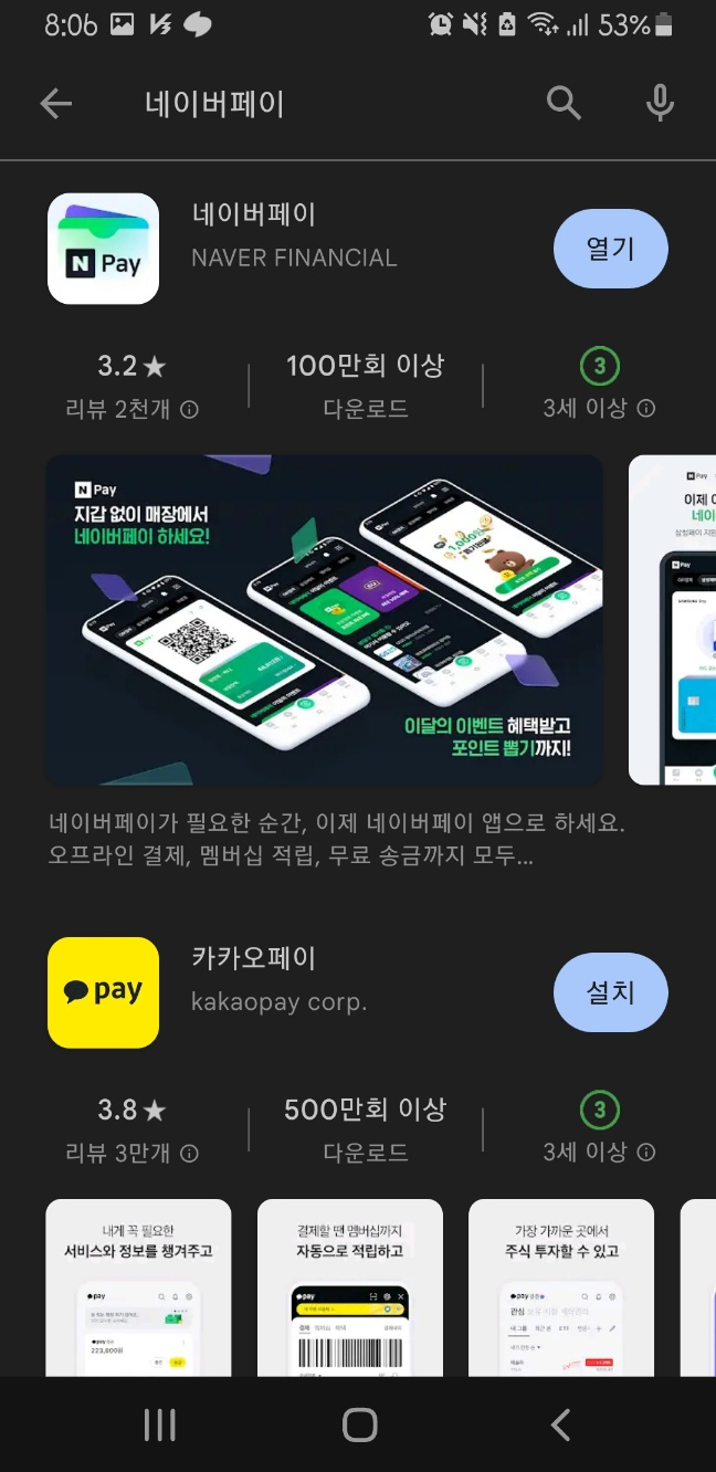 1. 플레이 스토어에서 네이버페이 앱을 다운 받아 설치