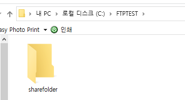 접속을 하면 ftp서버에 접속해서 목록을 확인할수 있습니다. C:\FTPTEST 폴더를 홈디렉토리로 설정했기때문에 해당폴더리스트가 나타납니다.
