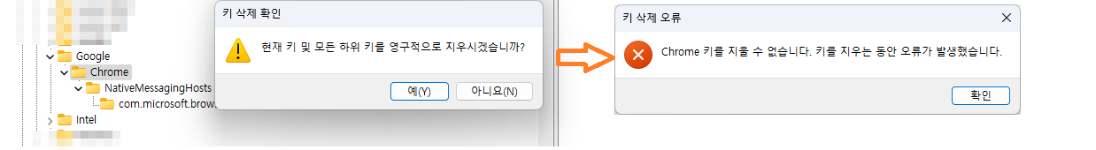 레지스트리값을 삭제할때 아래와 같이 "키를 지울 수 없습니다.키를 지우는 동안 오류가 발생했습니다." 와 같은 오류가 발생하여 키 값이 안지워지는 경우가 있습니다. PsTools를 사용하면 강제로 해당값을 삭제 할 수 있습니다.