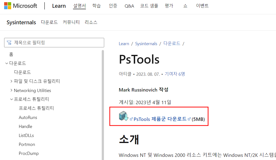 https://learn.microsoft.com/ko-kr/sysinternals/downloads/pstools
