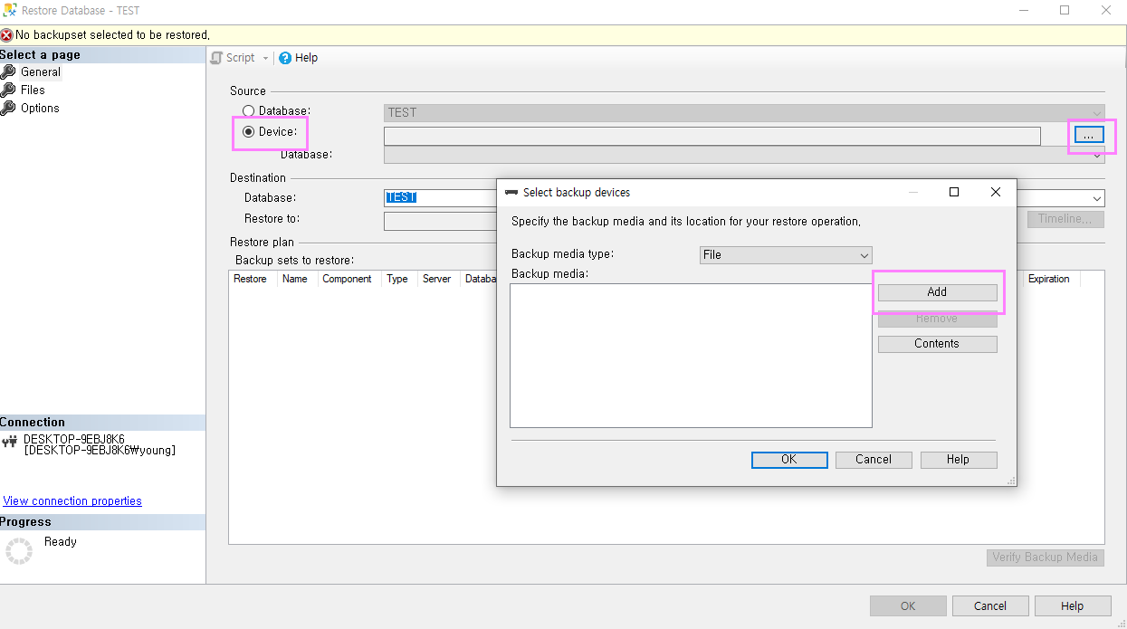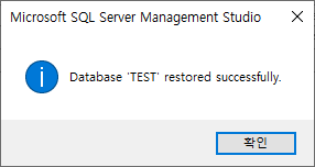 이미 TEST라는 DB명칭을 가진DB가 있을경우에 복구하는 방법입니다.