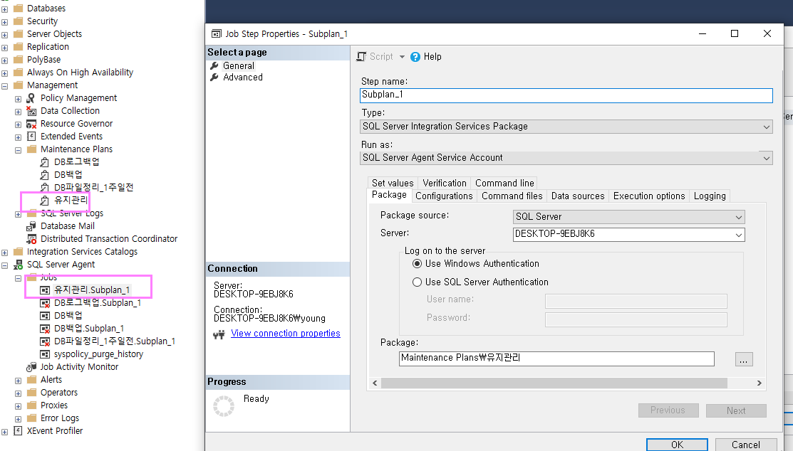 DB 백업 : Maintanance Plan선택후 진행