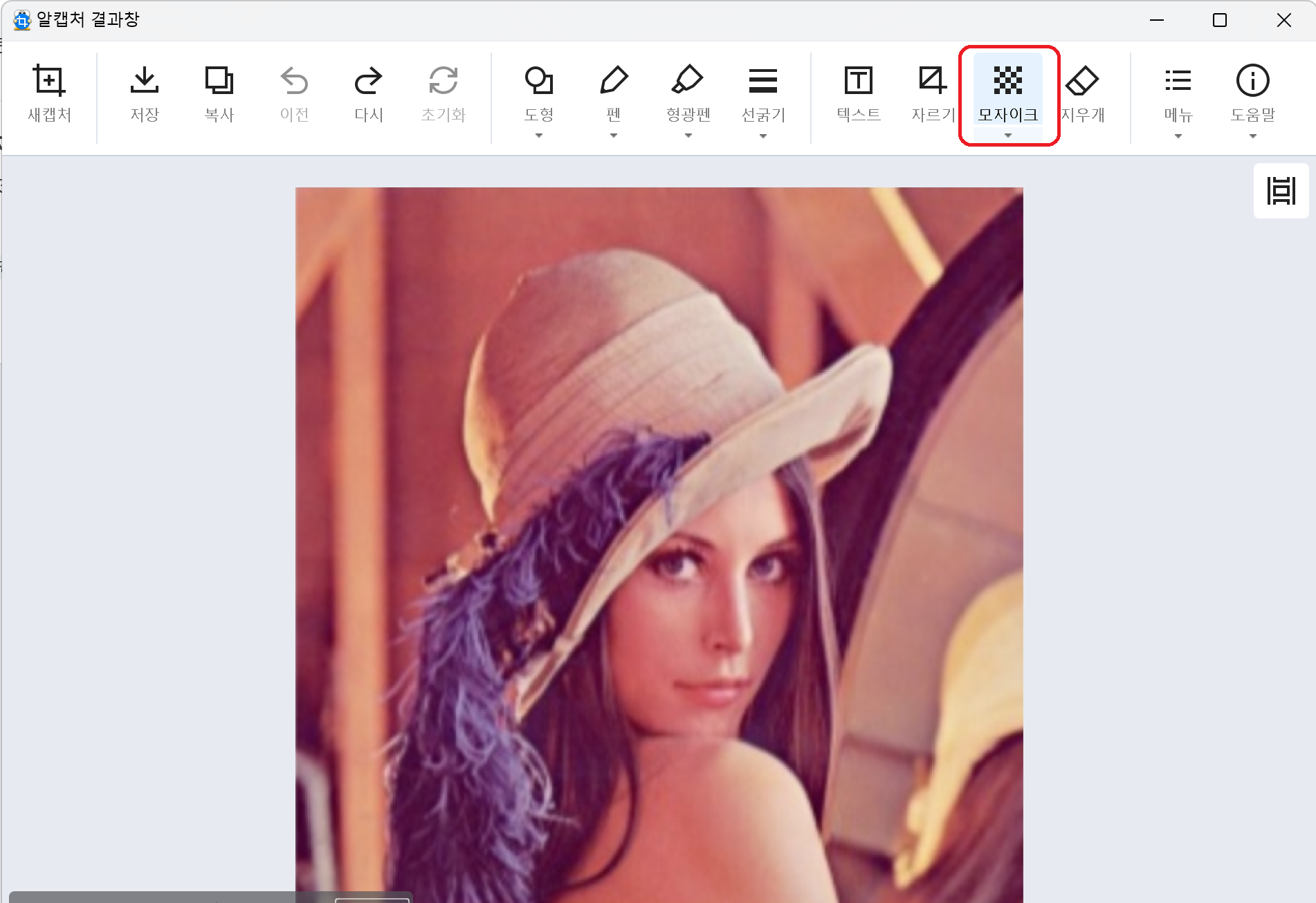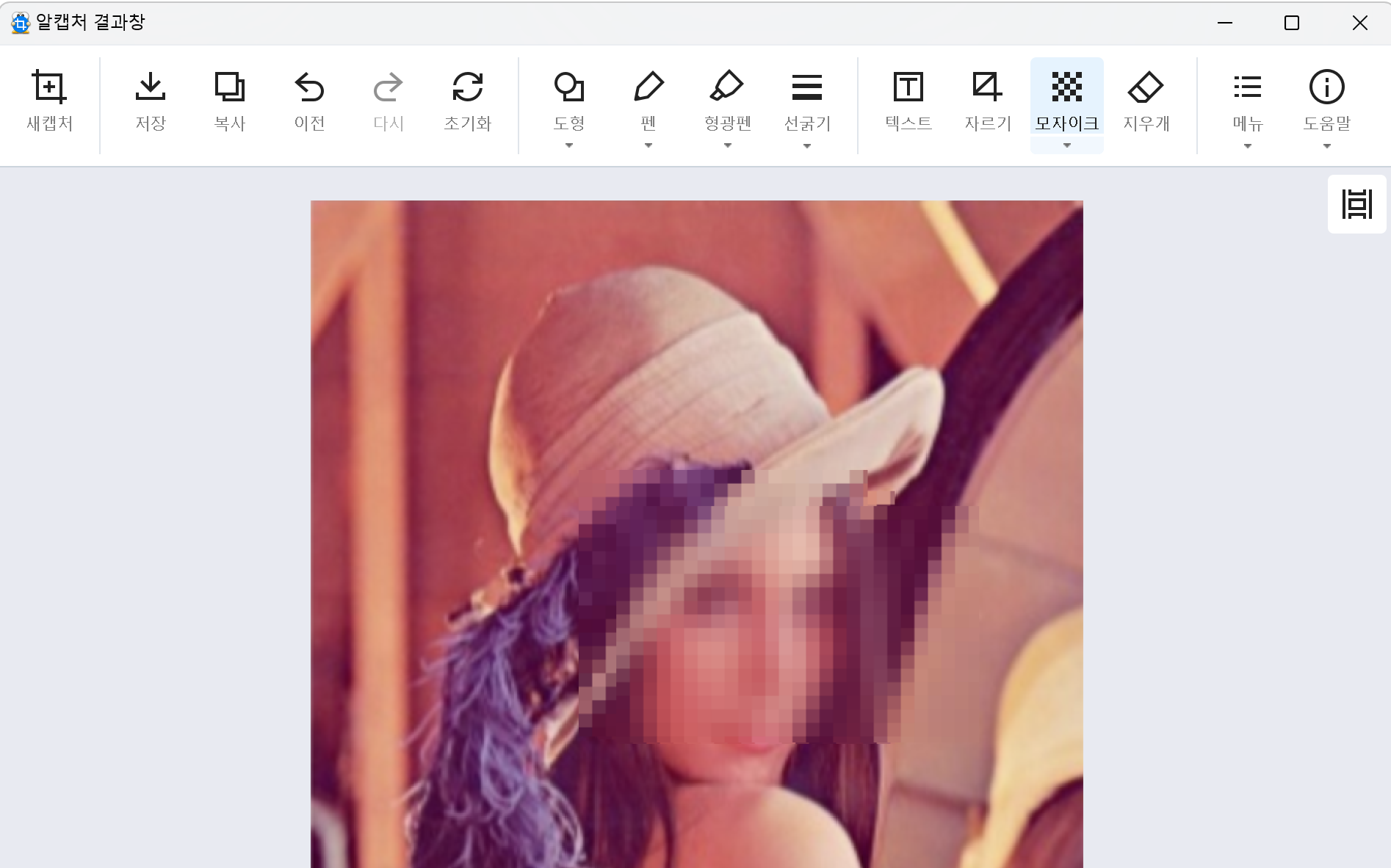 알캡쳐에서 특정이미지를 캡처 후 모자이크 기능을 사용하면 캡처된 이미지를 바로 모자이크 처리 할 수 있어서 편리합니다. 모자이크 강도도 조절이 가능합니다.