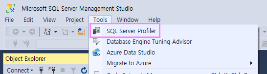 시스템을 운영하다가보면 데이터베이스에 부하를 주는 쿼리문을 확인해야하는 경우가 있습니다. 이럴때 SQL Profiler를 사용하여 속도저하 쿼리를 확인할수 있습니다. SQL Management -> SQL Server Profiler항목을 선택합니다.