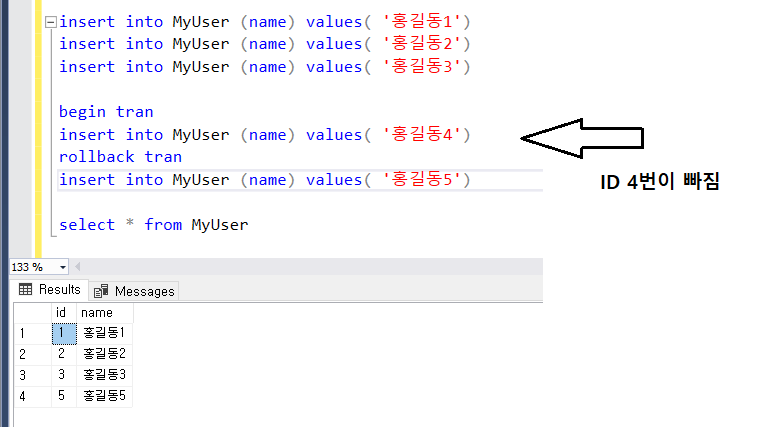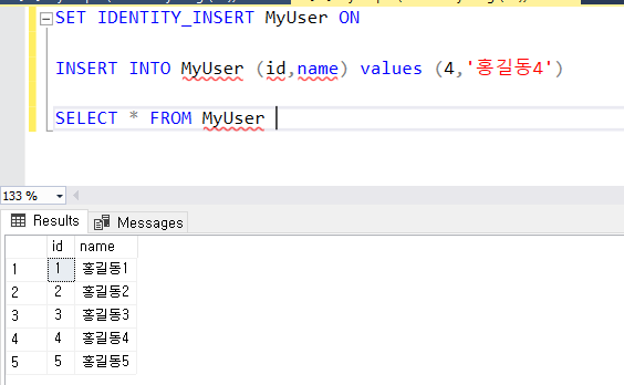 insert into MyUser values ('홍길동4');