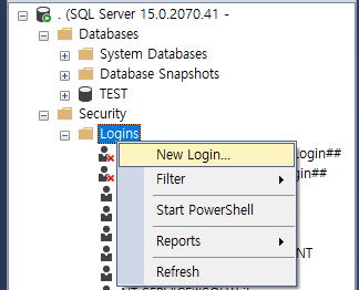 먼저 보안(Security) -< 로그인(Logins)메뉴의 New Login항목을 클릭합니다.