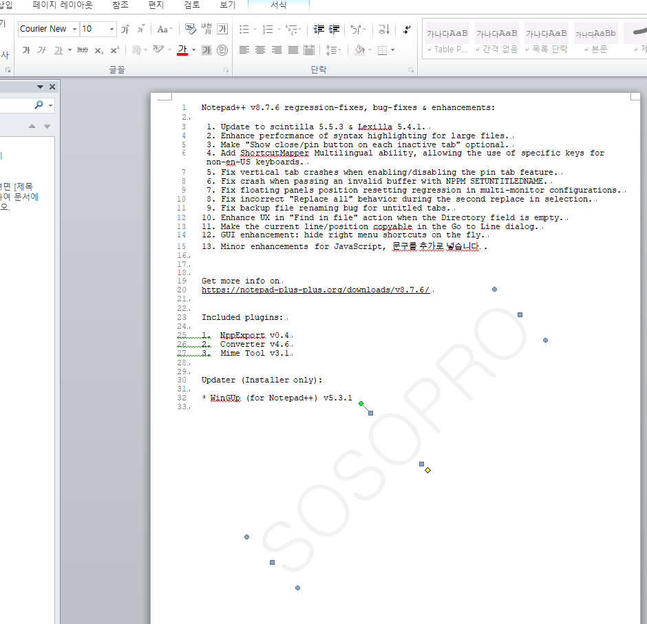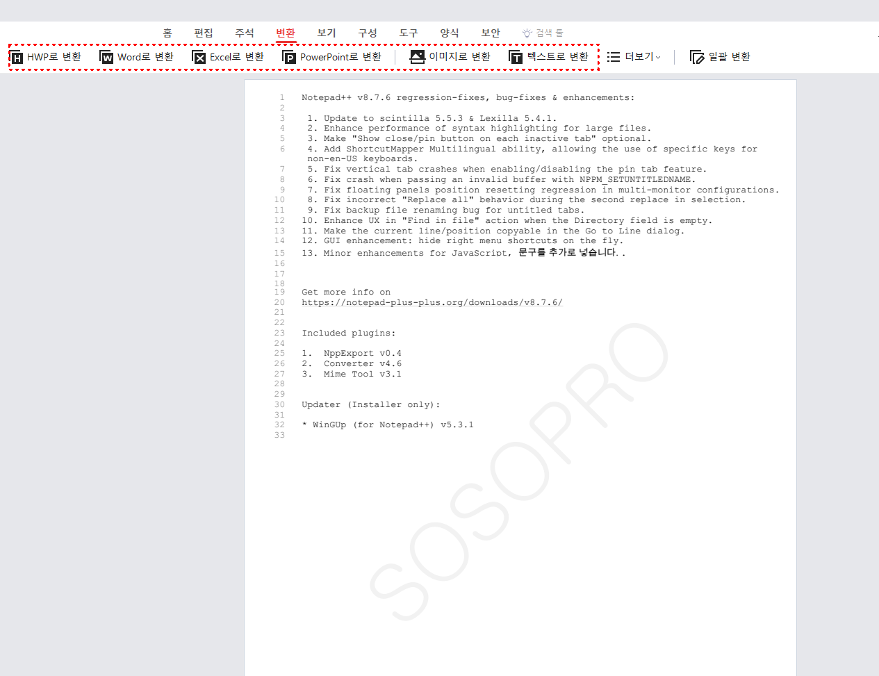 변환하기기능을 이용하여 알PDF로 파일정보를 편집한후에 한글,워드,엑셀,파워포인트등으로 파일 변환이 가능합니다. 문서파일로 변경해서 관리가 가능합니다. 아래는 워드파일로 변경 후 파일을 열으니 워터마크를 추가한 부분이 편집가능하도록 워드문서와 호환되는부분을 확인 할 수 있습니다.