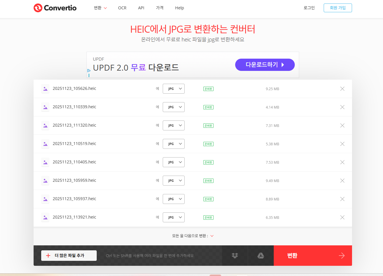 변환버튼을 눌러서 변환하면 heic파일에서 jpeg파일로 변환됩니다.