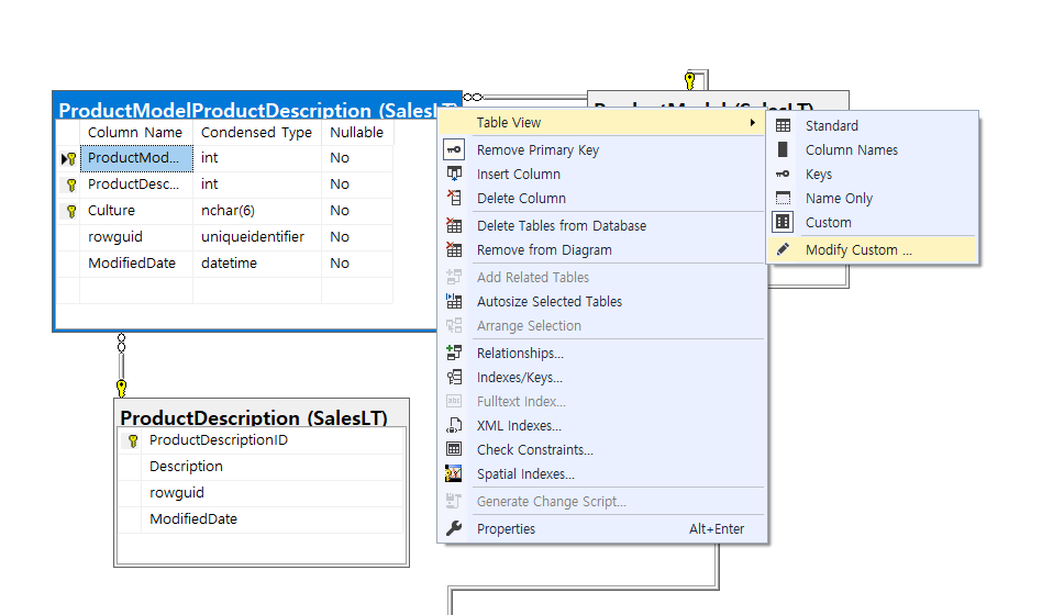 다시 데이터베이스 다이어그램을 다시 실행합니다(데이터베이스-> Database Diagrames -> New Database Diagram