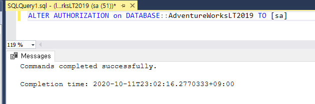 ALTER AUTHORIZATION on DATABASE::AdventureWorksLT2019 TO [sa]
