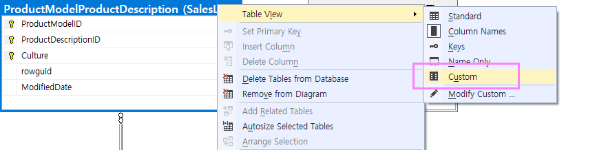 표시되는 항목을 보다 다양하게 하고 싶을경우에는 Modify Custom(사용자지정)부분에서 표시될 항목을 추가하면됩니다. 테이블설명에 대한 부분을 추가해보도록 하겠습니다.