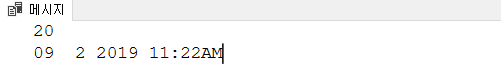 1 2 3 4 5 6 7 8 9 10 11 12 13 14 15 16 17 | DECLARE @a int DECLARE @b varchar(10) DECLARE @result int DECLARE @result_dt datetime DECLARE @str_dt varchar(30) set @a = 10; set @b = 10; SET @result = @a + CAST(@b AS INT) --날짜연산 SET @str_dt= '2019-08-23 11:22' SET @result_dt = (DATEADD("DAY",@a,CAST(@str_dt as datetime))) PRINT @result PRINT @result_dt | |