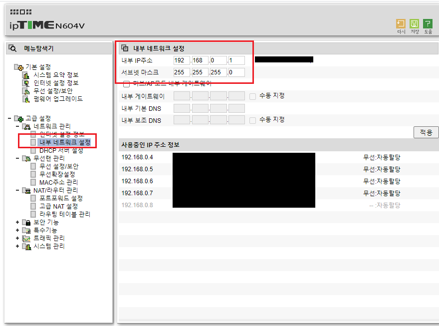 iptime공유기의 내부네트워크 설정방법에 대하여 알아보겠습니다. 기본적으로 192.168.0.1로 IP가할당됩니다. 거의 변경할 일이 없을겁니다. 다만 이미 사전에 특정 장치/장비들이 IP가 부여되어있어서 해당 내부IP대역을 사용하면서 추가로 인터넷을 연결하고 싶을경우가 있습니다. 이럴때는 내부IP대역을 변경해야합니다.