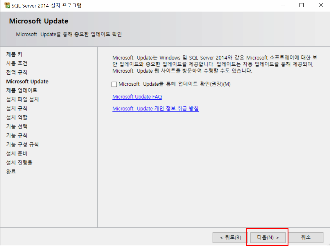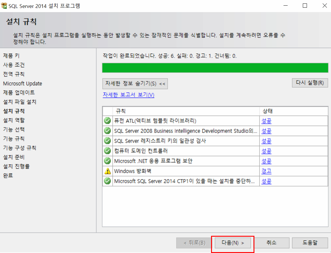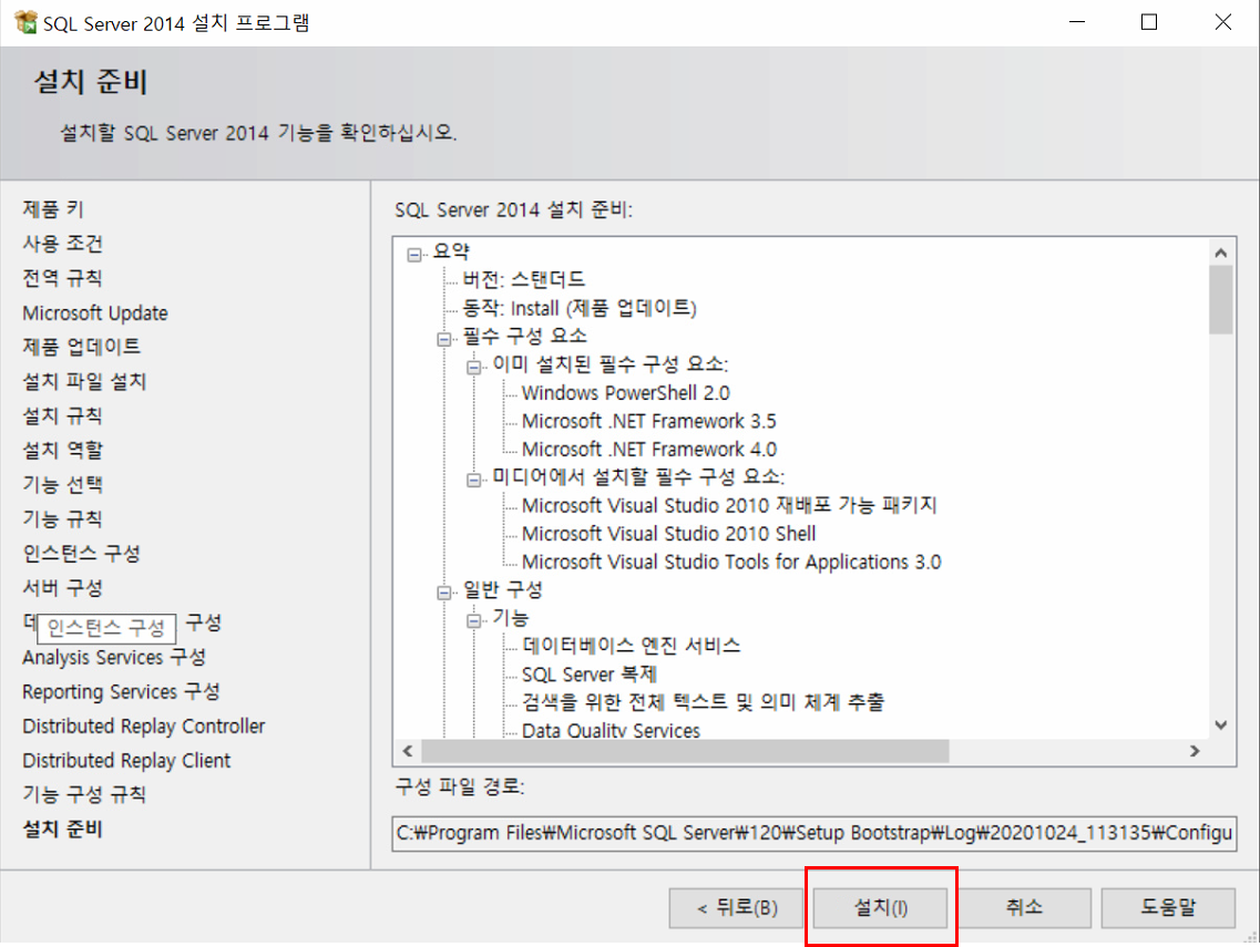 이제 설치버튼을 누리면 SQL SERVER가 설치됩니다.