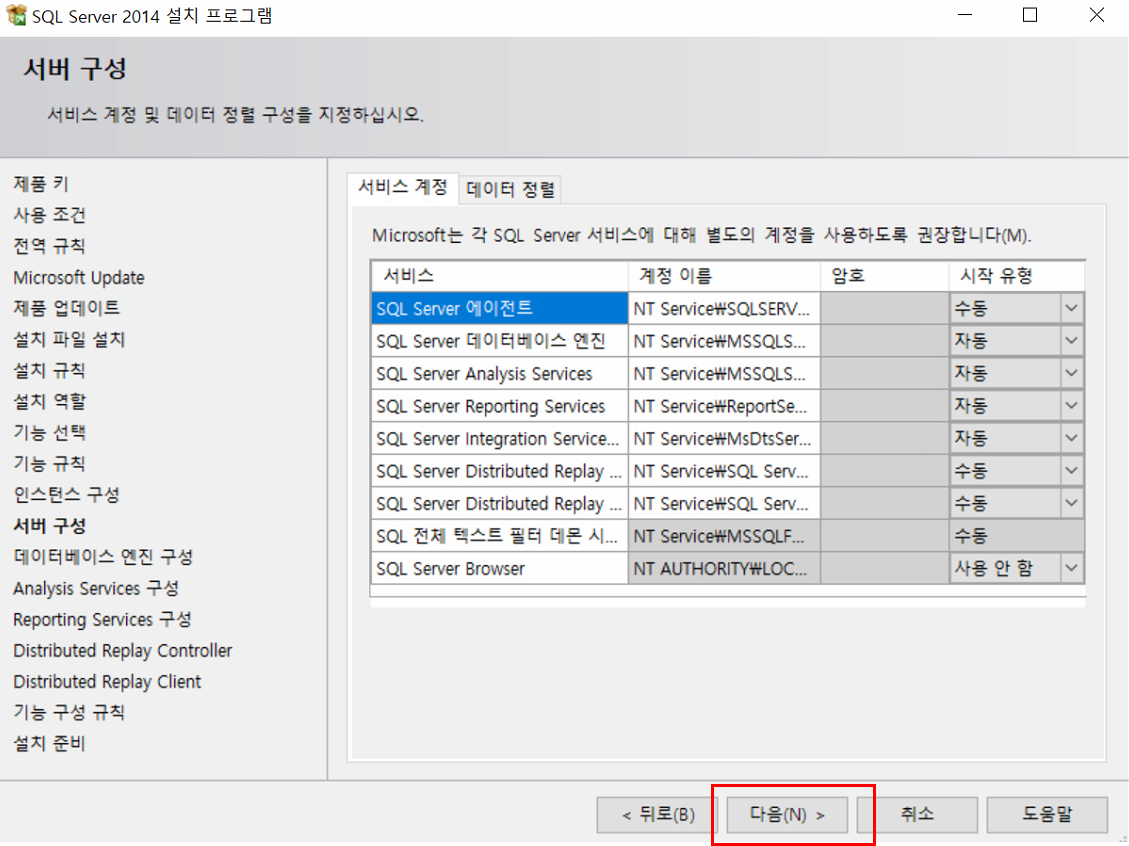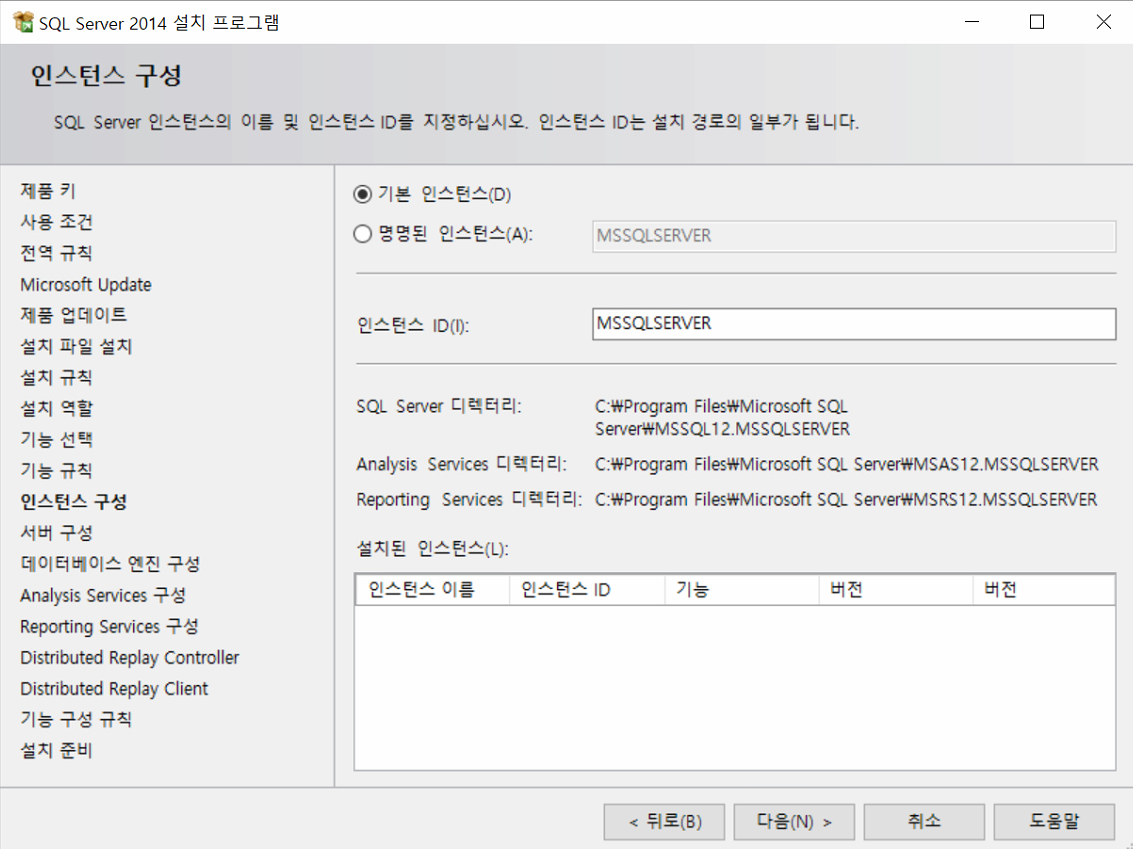 인스턴스는 기본인스턴스로 구성하겠고 인스턴스명을 바꾸시고 싶은 분들은 명명된 인스턴스명에 입력후 진행하면됩니다.