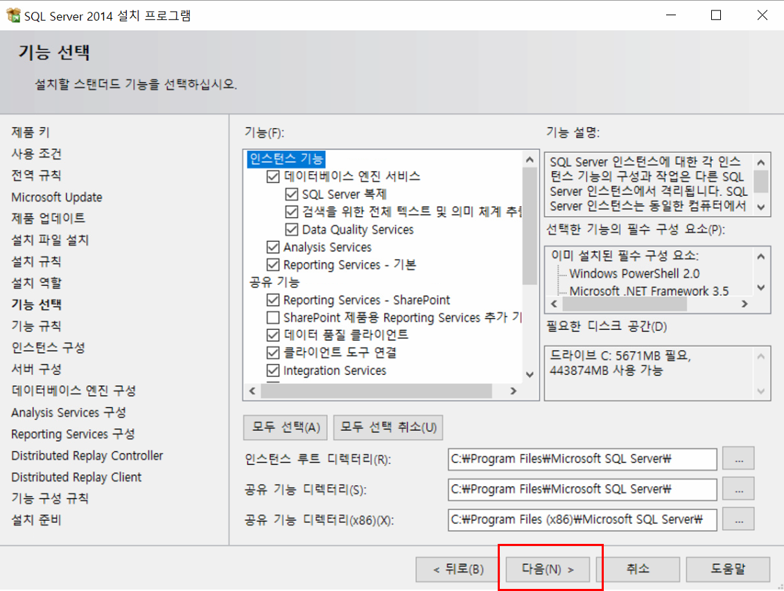 모든 기능을 기본값으로 하여 설치하도록 하겠습니다.