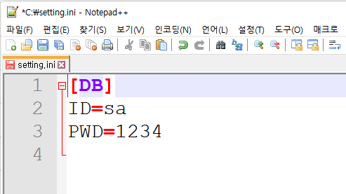 iniFile.IniWriteValue("DB", "PWD", "1234");