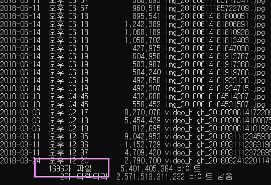 폴더내의 파일항목을 일괄로 출력하고 싶은경우가 있습니다. 폴더자체안에 파일이 얼마되지 않을경우에는 커맨드창에서 dir명령으로 조회후 마우스로 복사하면 손쉽게 할 수 있습니다. 아래 그림과 같이 파일이 많을 경우에도 어떻게 가능도 하겠지만 시간소요도 많이되고 거의 불가능하겠죠....