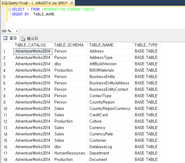 그럴경우는 INFORMATION_SCHEMA시스템 테이블을 조회해서 해당목록을 추출할수 있습니다.